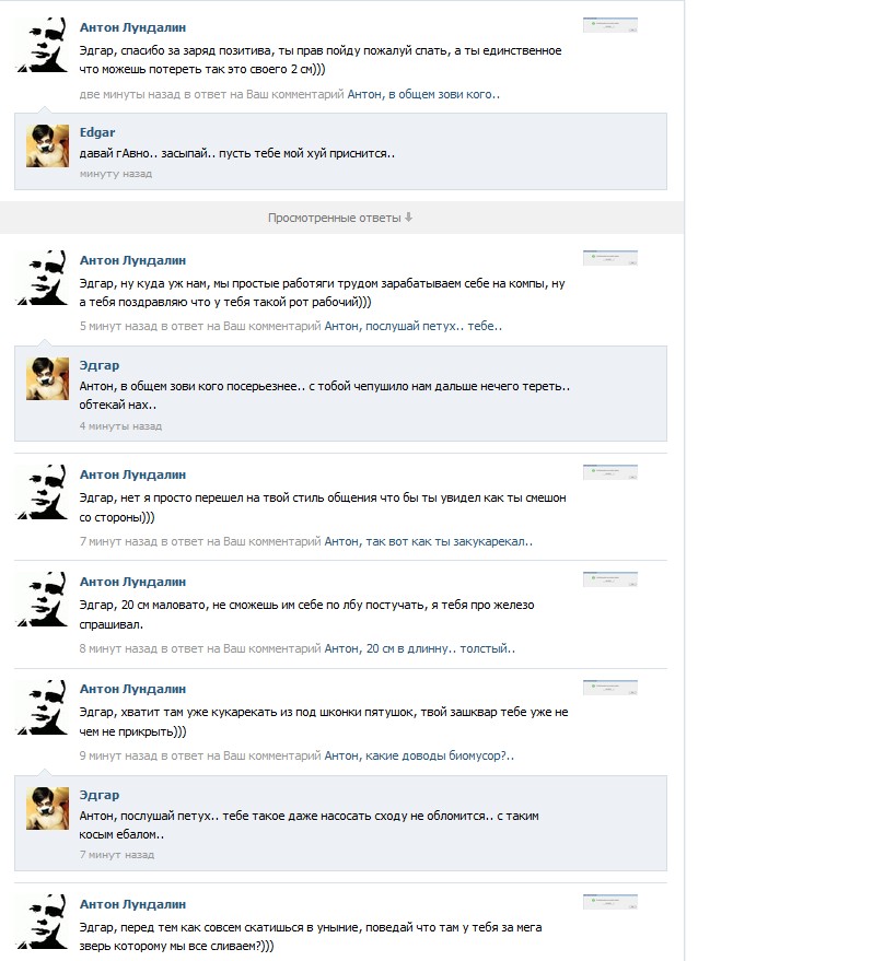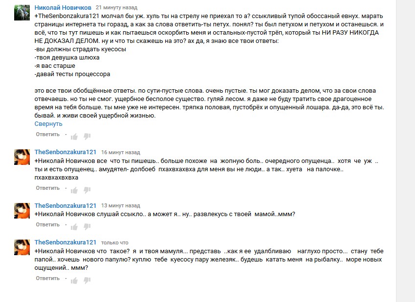 Добавлено спустя 42 минуты 59 секунд:вспомнил бредопостинг.. В реале не будет пощады к твоей личности. Тебе рошибут монтировкой твою тупую голову. Просто так. Знаешь почему, ты проявлял ненависть к вещам.