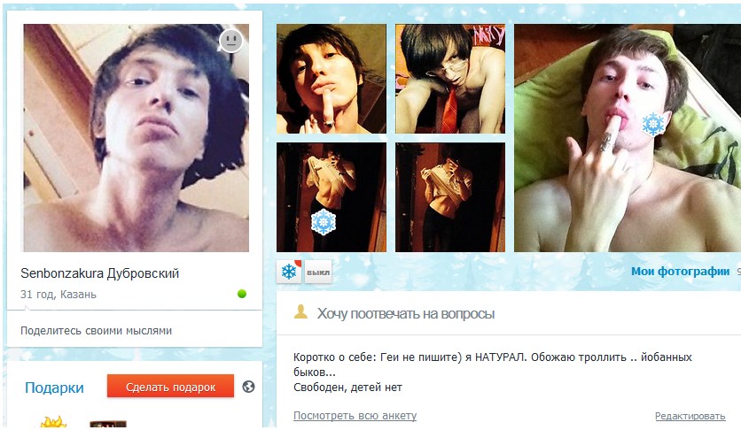 Шибон ты добиваешься чтобы тебя покалечили??? Ответь на вопрос? Неужели ты думаешь так все просто пройдет, и ты за свой базар не ответишь? Шибон так че ты не поехал в Геленджик? Тебя бы там избили. Просто в казани нет мужиков изибить тебя либо ты не из Казани.