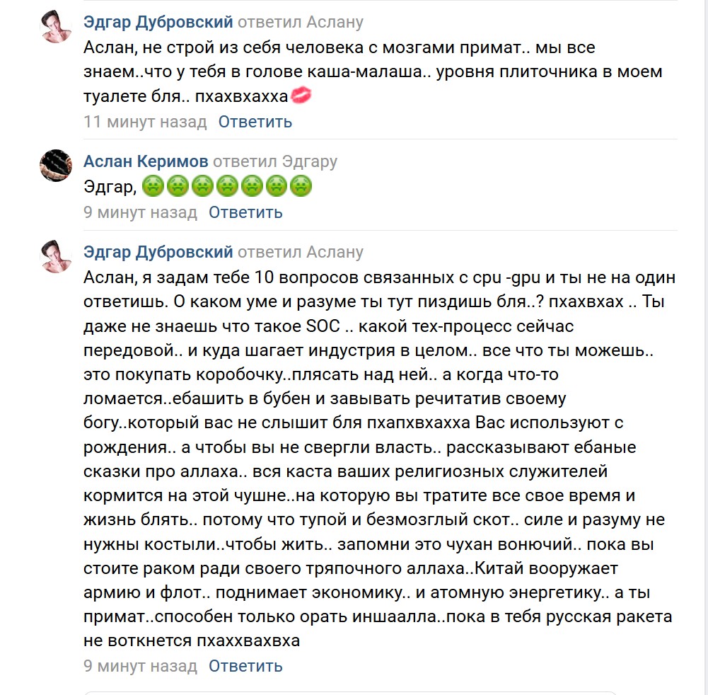 Ну че обезьянка..как там продвигаются мои поиски? Мне начинать бояться..или еще можно твоего аллаха поебать? пхахвхахвха бля :desk: :desk: