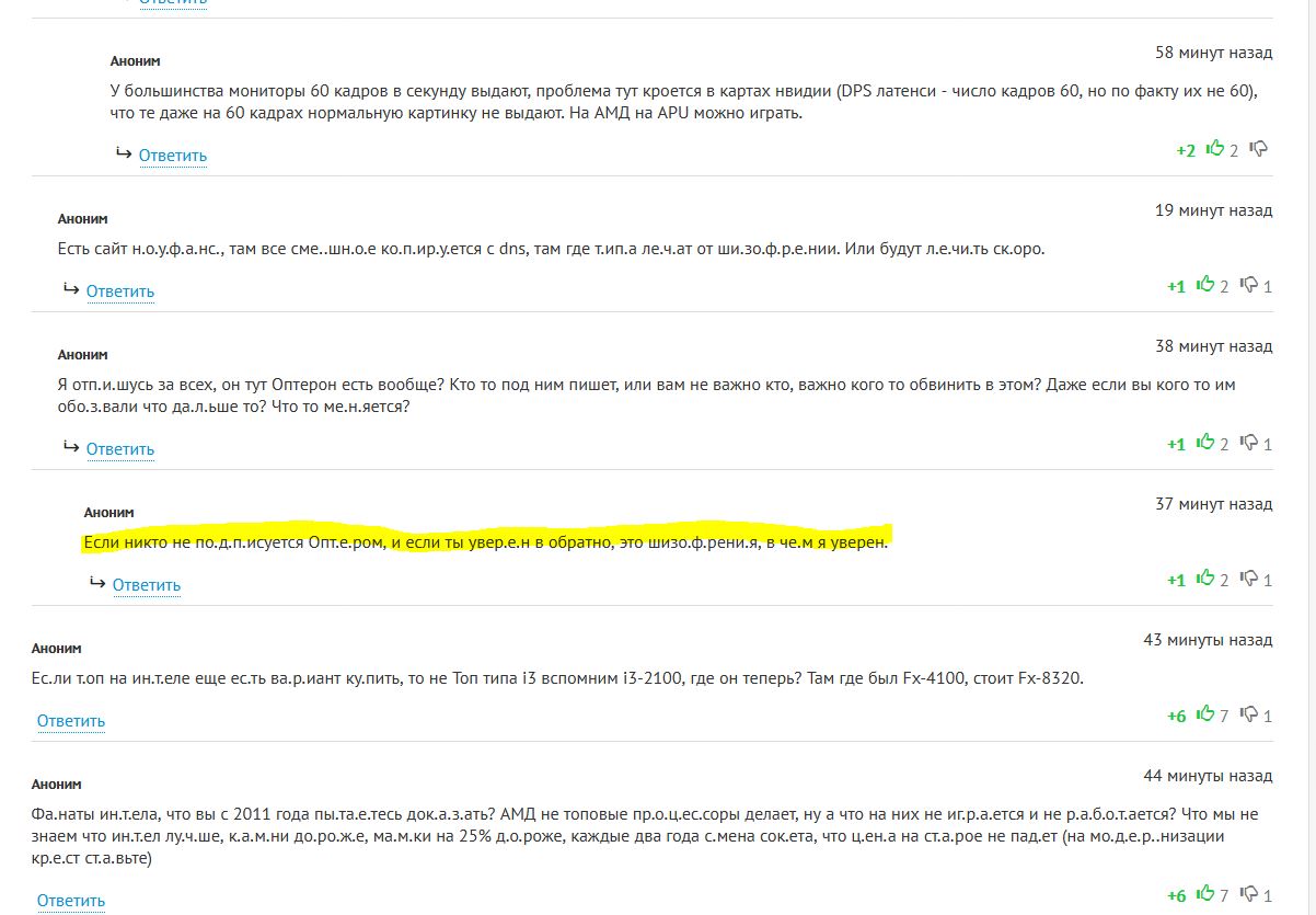 Я помню каждый собранный комп на АМД, каждый винтик. Каждого клиента помню, его радостный взгляд. Я думал Амд меняет людей к лучшему но вчера вечером меня избил на улице мой клиент, за то что его комп завис. Скажу так русское б.ы.д.л.о недостойно иметь АМД. Берите пример с Ши-бы, покупайте Интел. Больше никому не соберу на АМД.