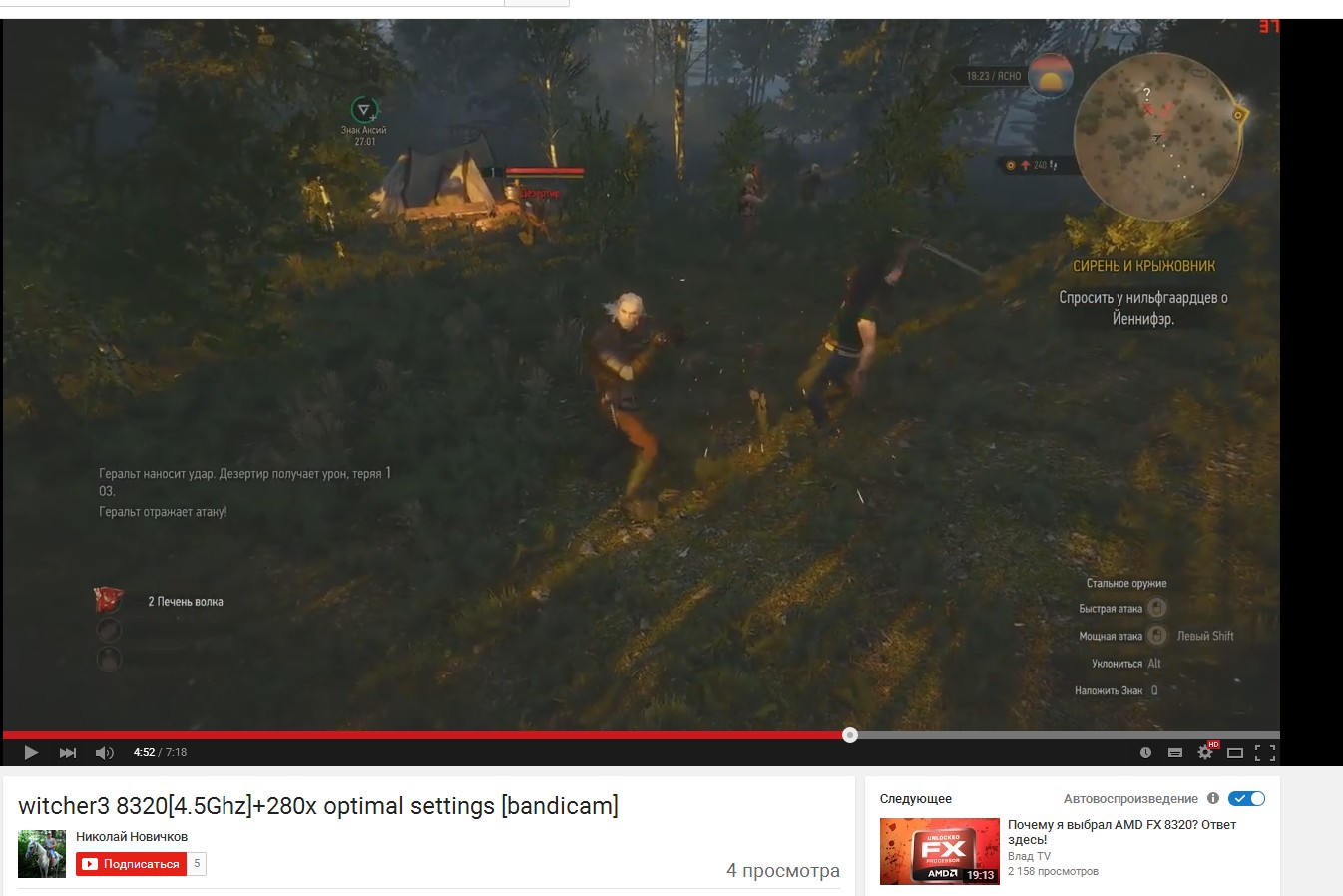 вот. на бандикам записаный геймплей вичер 3. настройки показываю на 1:57.
