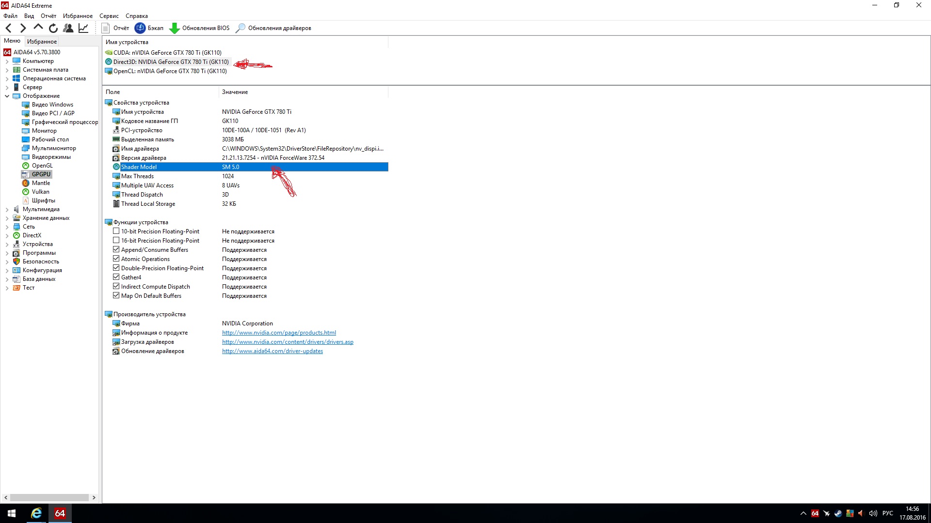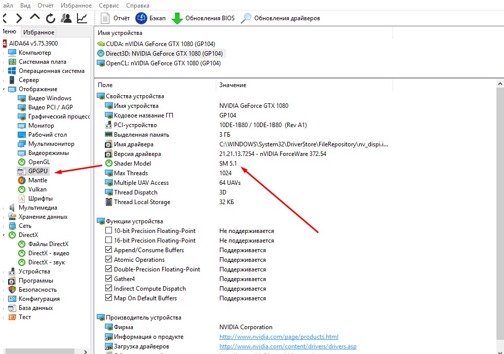 проверь в аиде (вкладка GPGPU) поддерживает ли паскаль Shader Model SM 6.0...новый драйвер добавил поддержку WDDM 2.1, там есть такая фича.