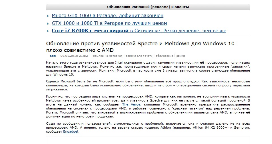 Почитал перлы от АМД. Первая проблема их касается, там те жемпатчи нужны. Вторая "мы верим, что нас не касается, потому что другая архитектура" это звездец. У интеловских архитектур тоже различная с бульдозерами архитектура. Третья - та же отмазка.