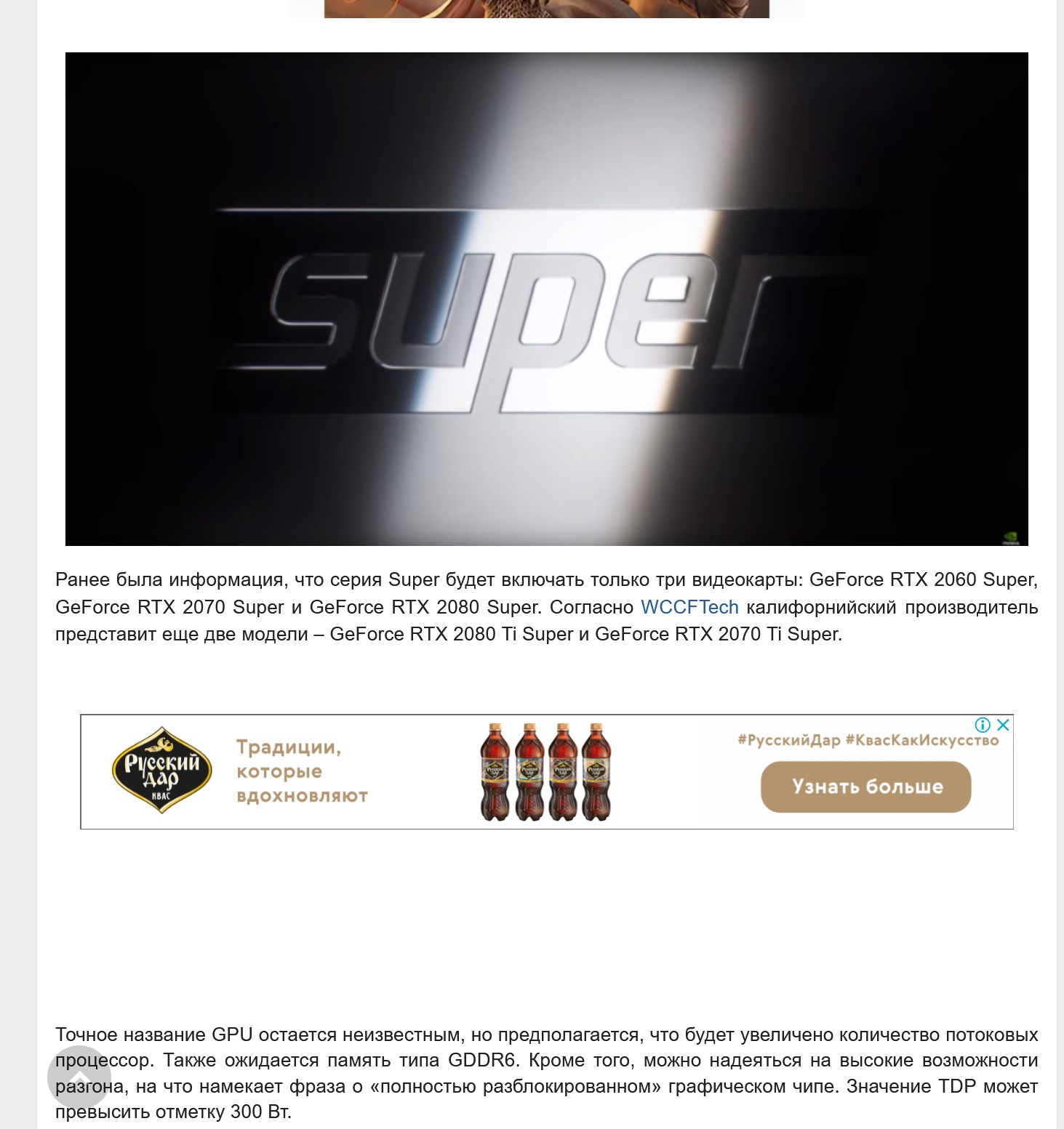 Точное название GPU остается неизвестным, но предполагается, что будет увеличено количество потоковых процессор. Также ожидается память типа GDDR6. Кроме того, можно надеяться на высокие возможности разгона, на что намекает фраза о «полностью разблокированном» графическом чипе. Значение TDP может превысить отметку 300 Вт.
