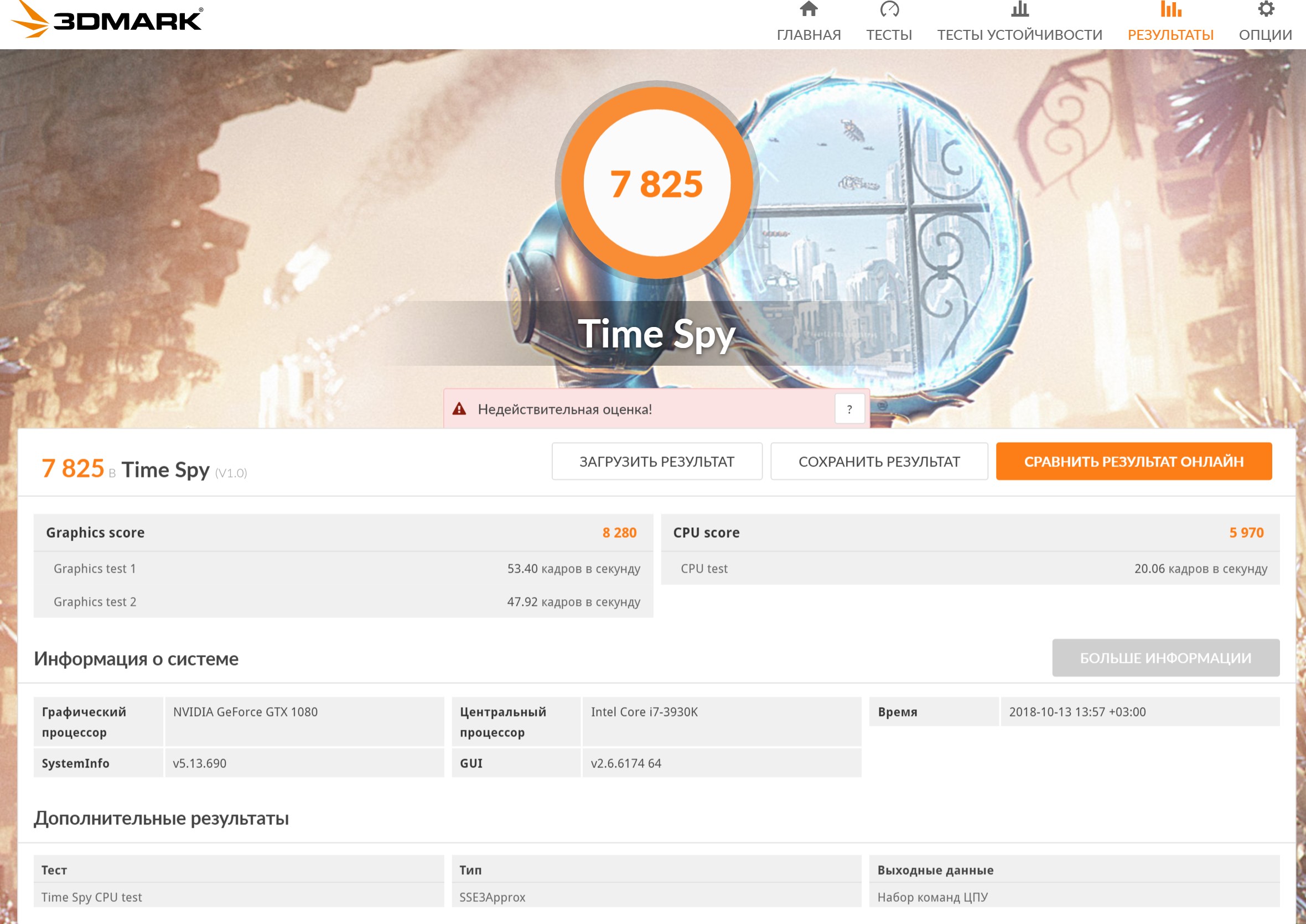 Мой резалт в 3д марк тайм спай..