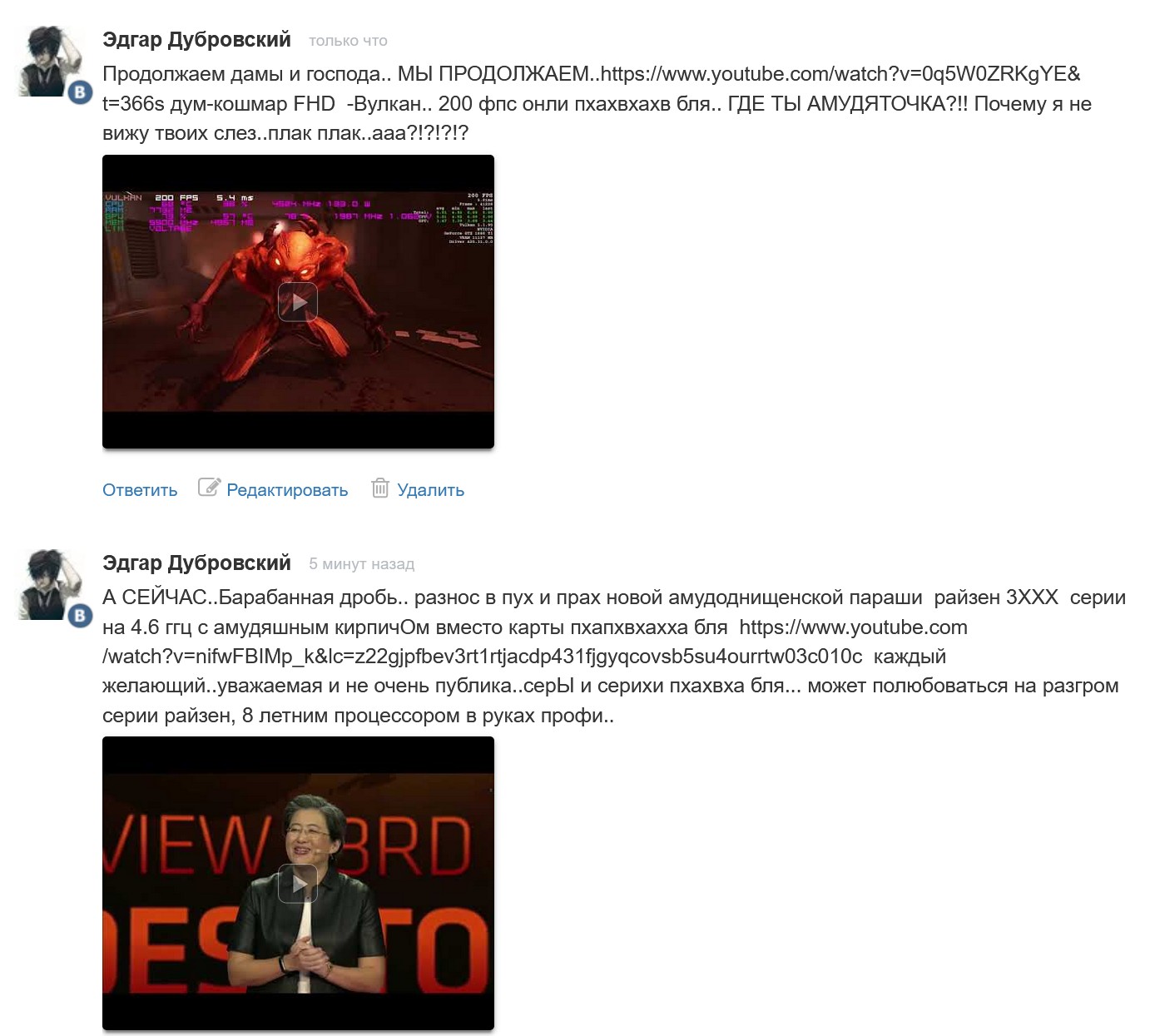 Хуанг работает..пока амд клепает ебаные кирпичи сука.. а вы сосете мою залупу..амудообсосы блять пхахвхаахх :desk: :desk: :cry: :cry: